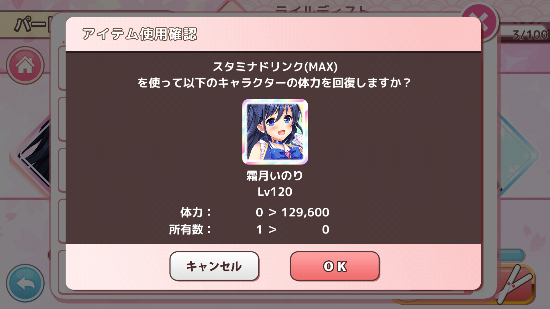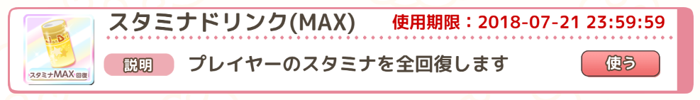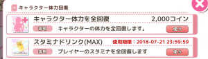 補填で配られたスタミナMAX剤は、体力全回復ですね。