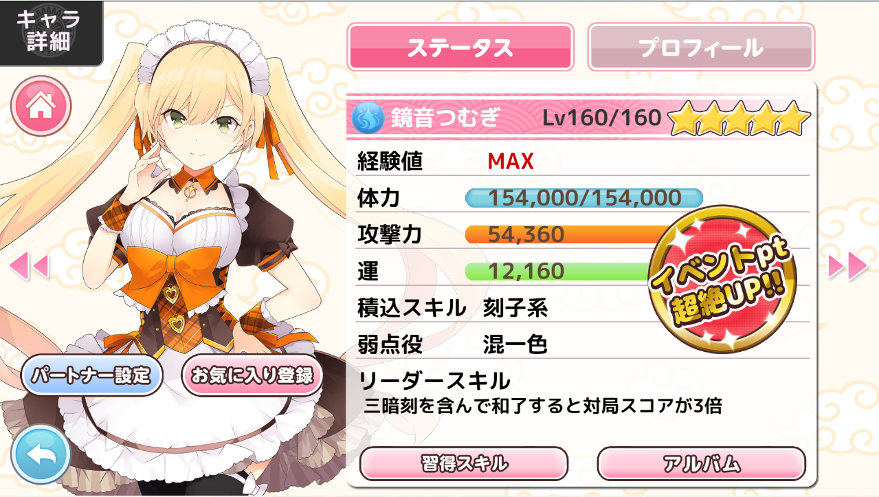 »409 ありがとうございます!たしかにつぐみをLvMAX(Lv160)にしていると三暗刻になっていますね 確認画像の提供ありがとうございますm(_ _)m -