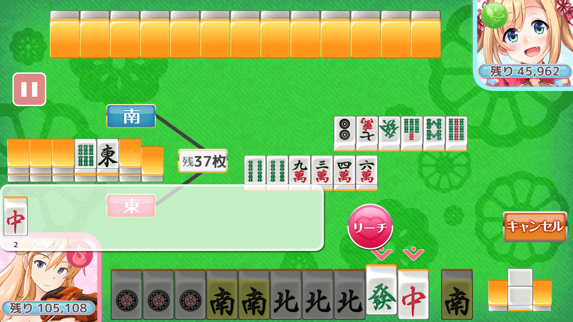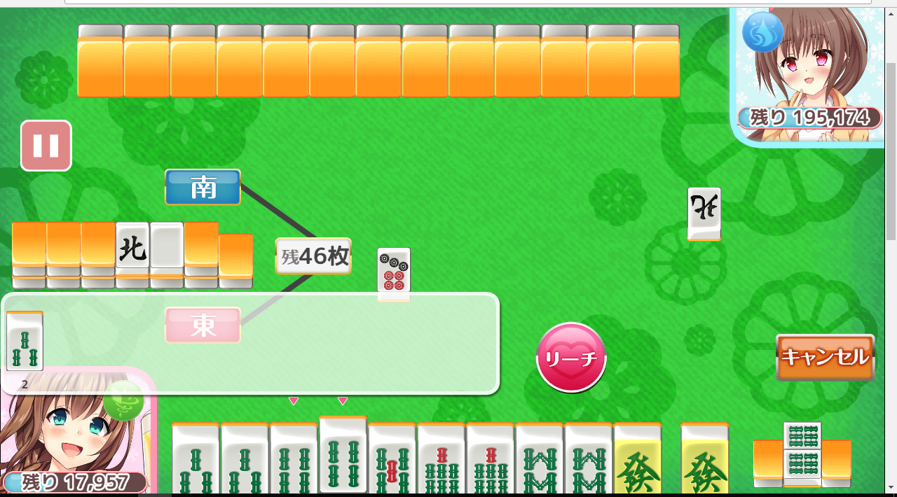 ちなみに、リーチ後に相手からロン牌が出て、(やすめだから)見逃しても以降フリテンになります。