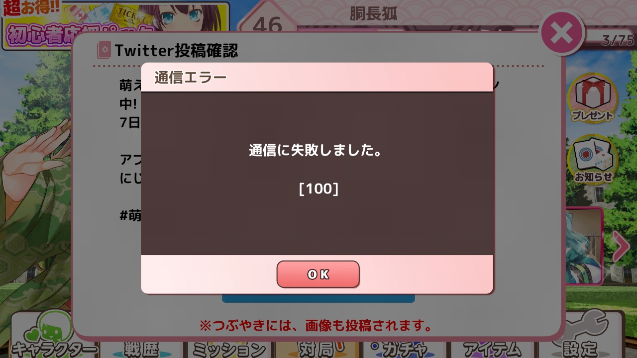 私もイベントツイートがエラーコード100で投稿できません