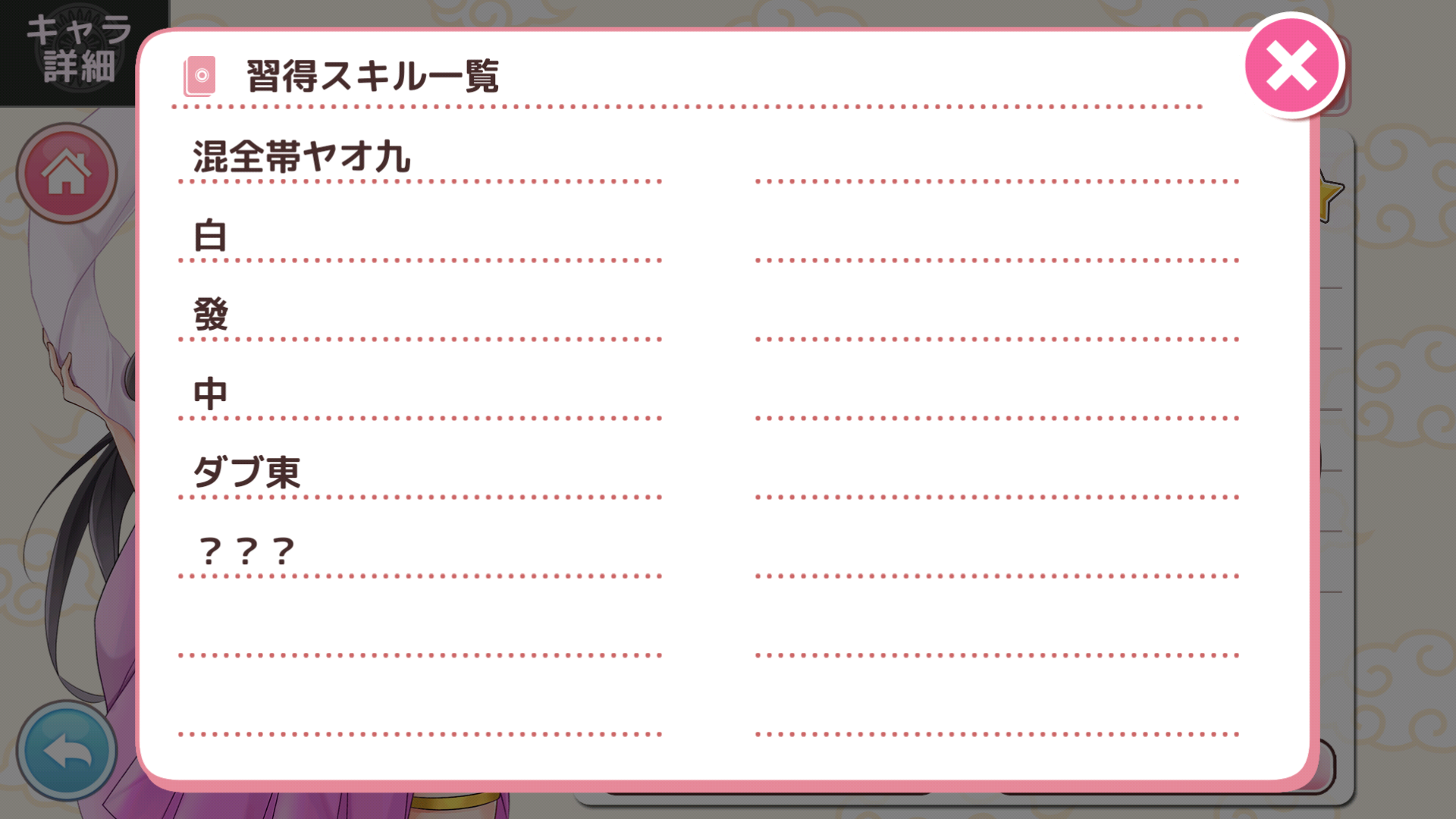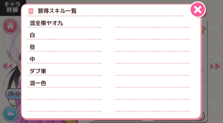 本来、混頭老の積み込みスキルを想定していましたがこちらのデータベースにて修正をしてしまうと、別の不具合が発生する可能性がある為、混全帯ヤオ九を仕様とさせていただきます。なお、段位戦でのゲームバランスへの影響はございません。
