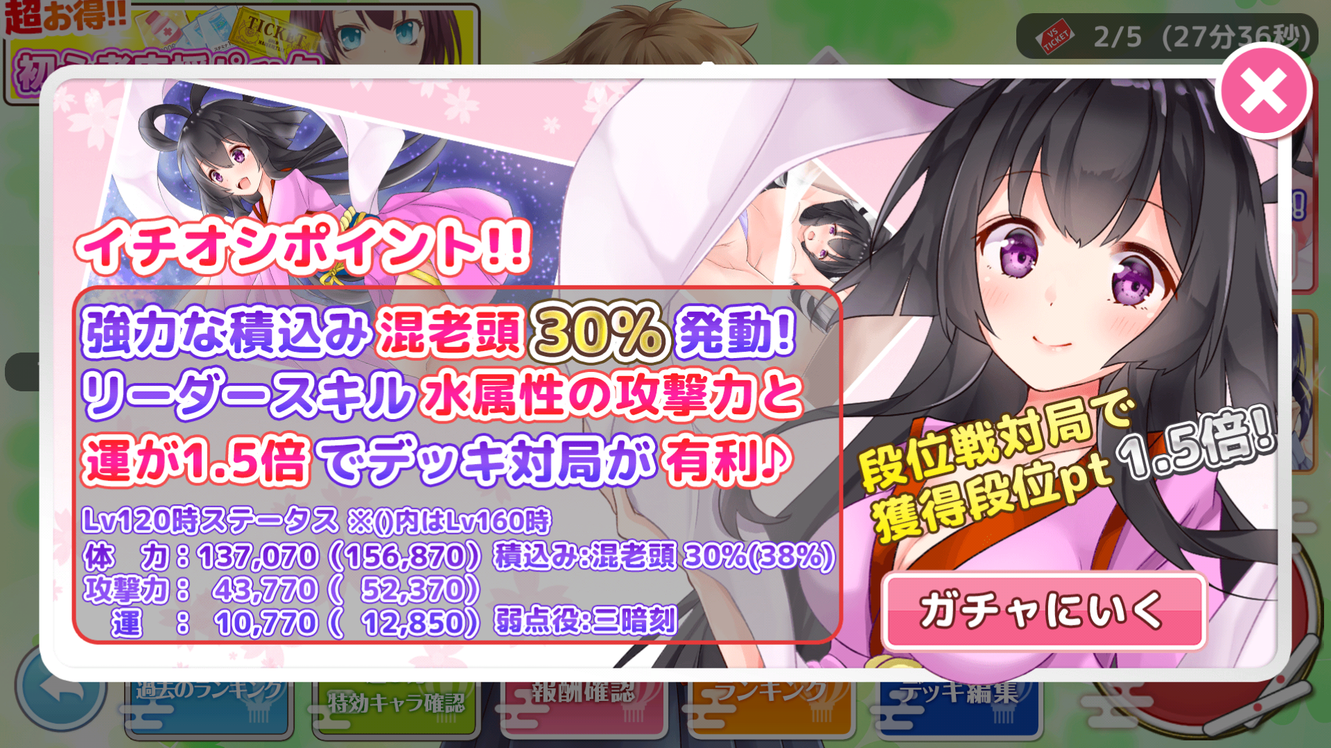 イベントバーナーだと混老頭30%であるが、それを目的として織川みきを狙ってガチャを回して当てたが、実際は混全帯ヤオ九であり混老頭が発動しません。
