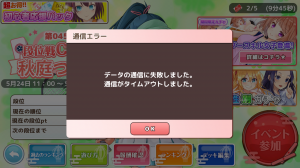 道場やるときなぜか通信エラーばかりでる。スタミナ無駄になるわ。イベントは大丈夫やったけど