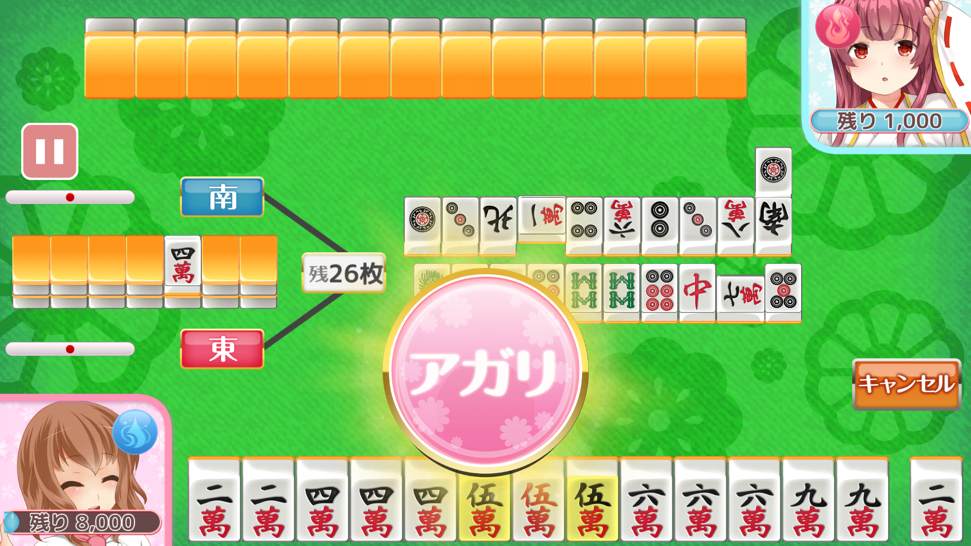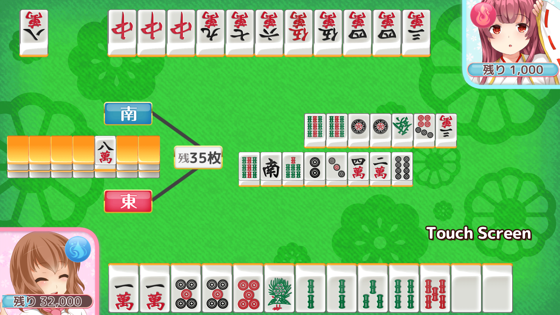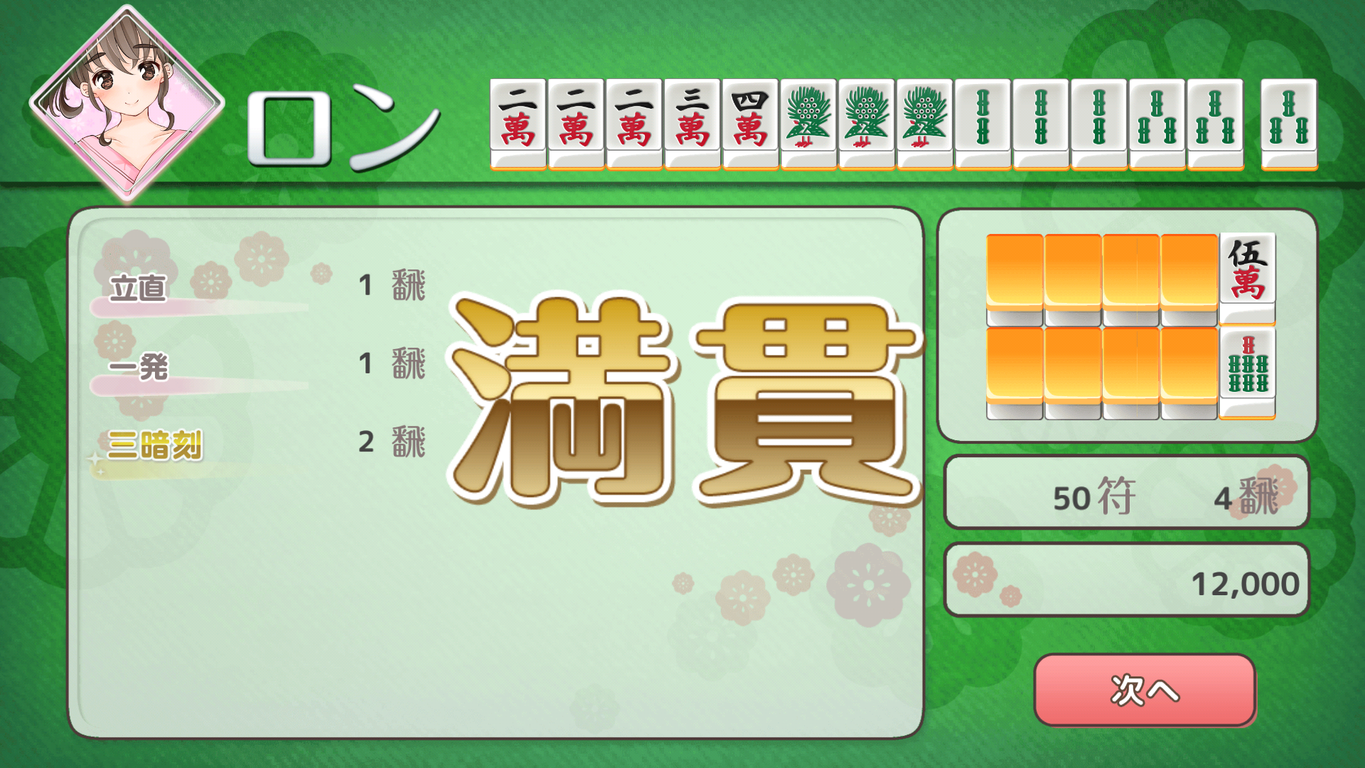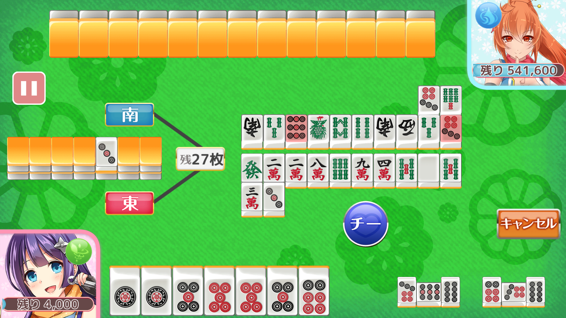 二人麻雀のこのシステムでは字牌4枚来たら即暗カンしてたので、確認出来てませんが、そういう4枚使いの「使い切り」リーチができそうですね(苦笑)