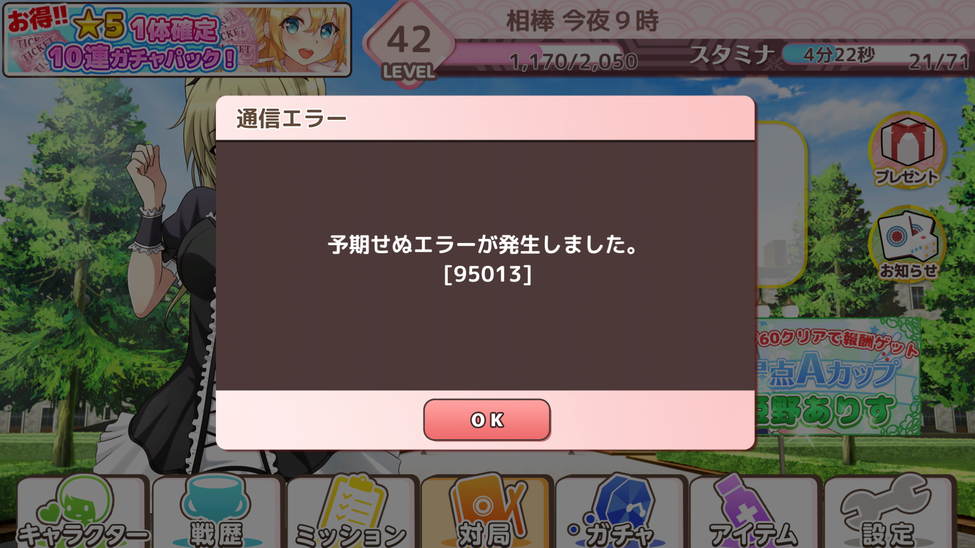 これは8月から続いている不具合であり、最初期からのプレイヤーは皆、諦めています(笑)