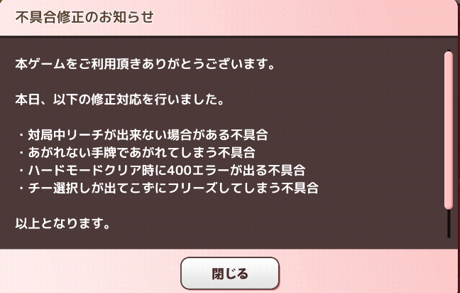どっちにしても、今回のは和了画面でも手牌に全く変化がなかったので、確実に和了判定に問題があります。