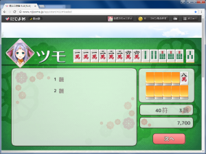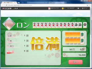 にじよめトップに「麻雀で遊ぼう特集」ってバナーがあって、その中に麻雀の役一覧があるんだけど、下から二つ目に載ってる四槓子の絵が間違ってますな。 -