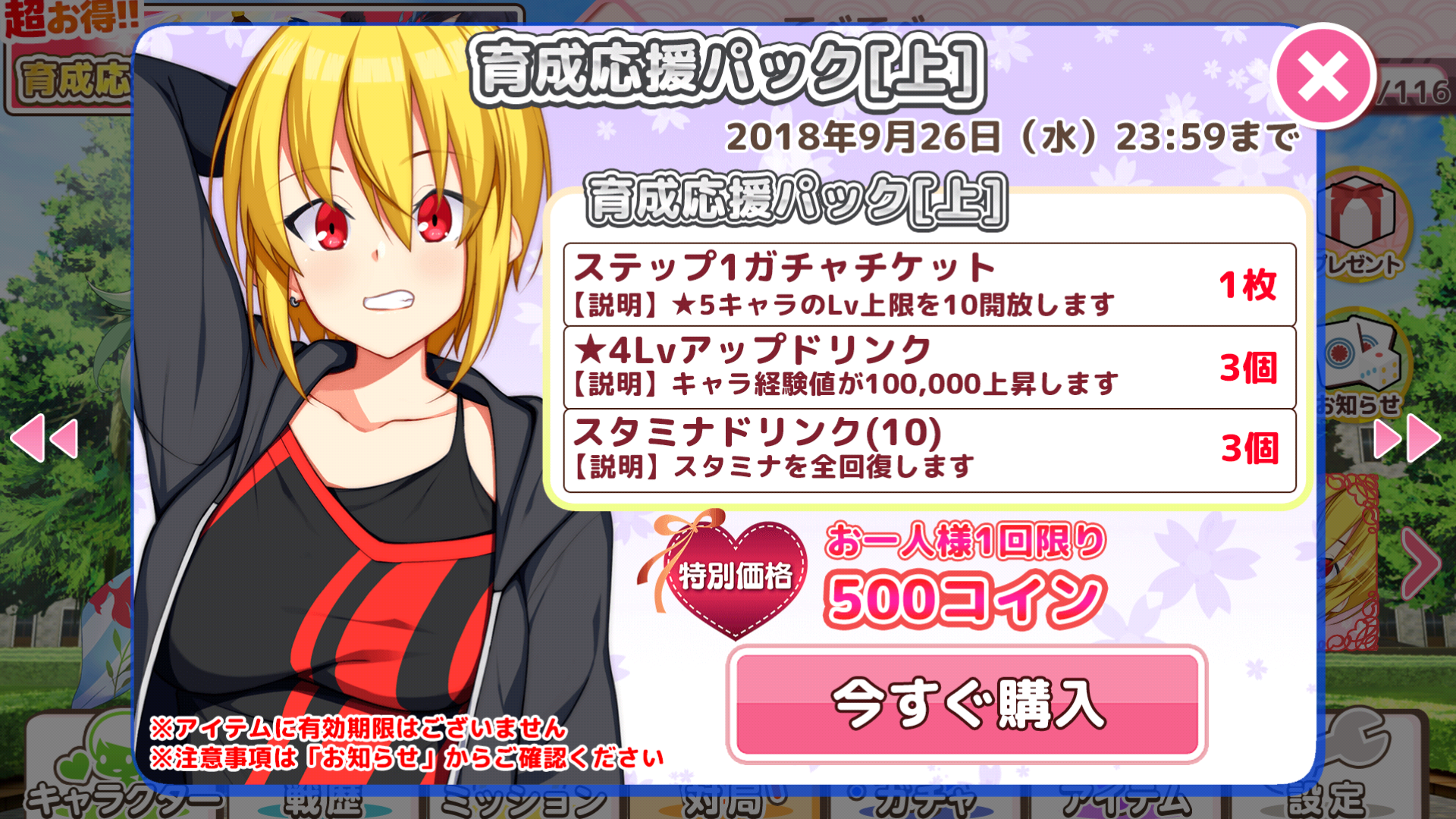心配していたとおり(?)、10/8の☆5Lvアップドリンクも届いていません・・・