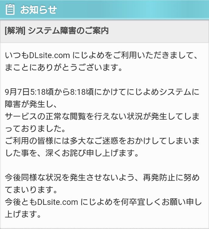 ※お知らせ8時頃復旧とか書いてますが9時ぐらいまで復旧してませんw(証拠はTwitter)