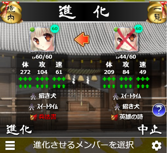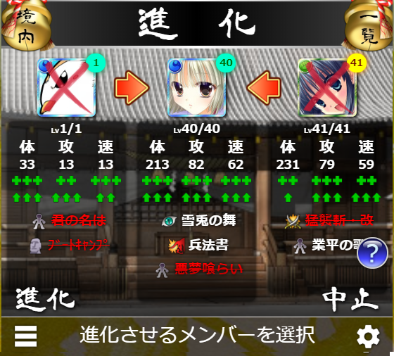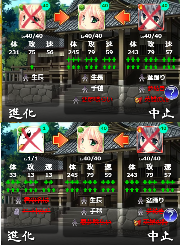 因みにSR2枚集めて進化させれば技能がランクアップするとは限りません。