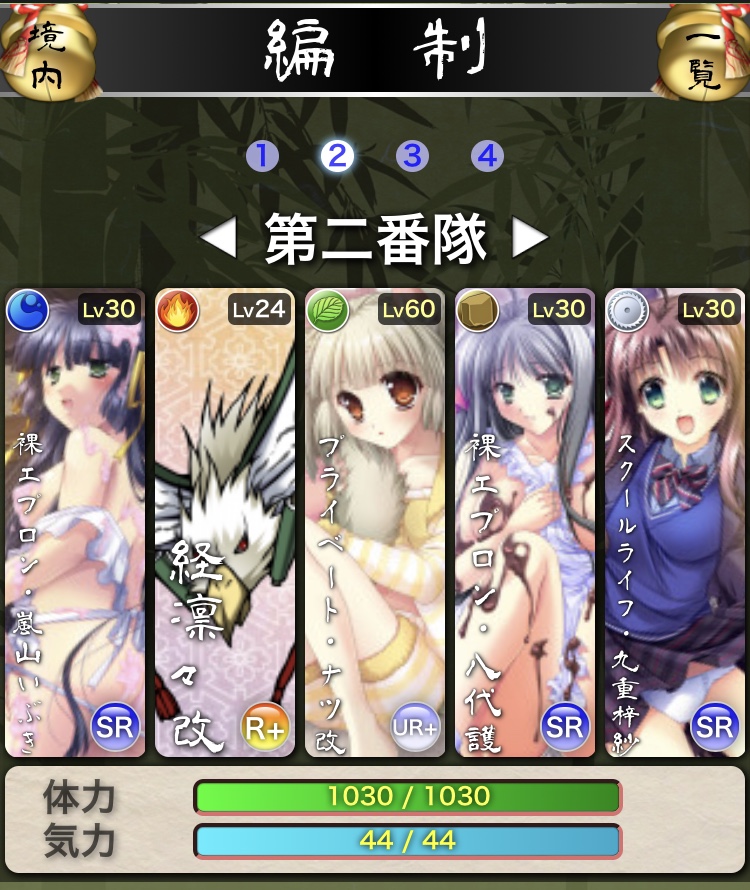 とりあえずアドバイスするならリーダーのいぶきをSRにしたほうが良いよ。