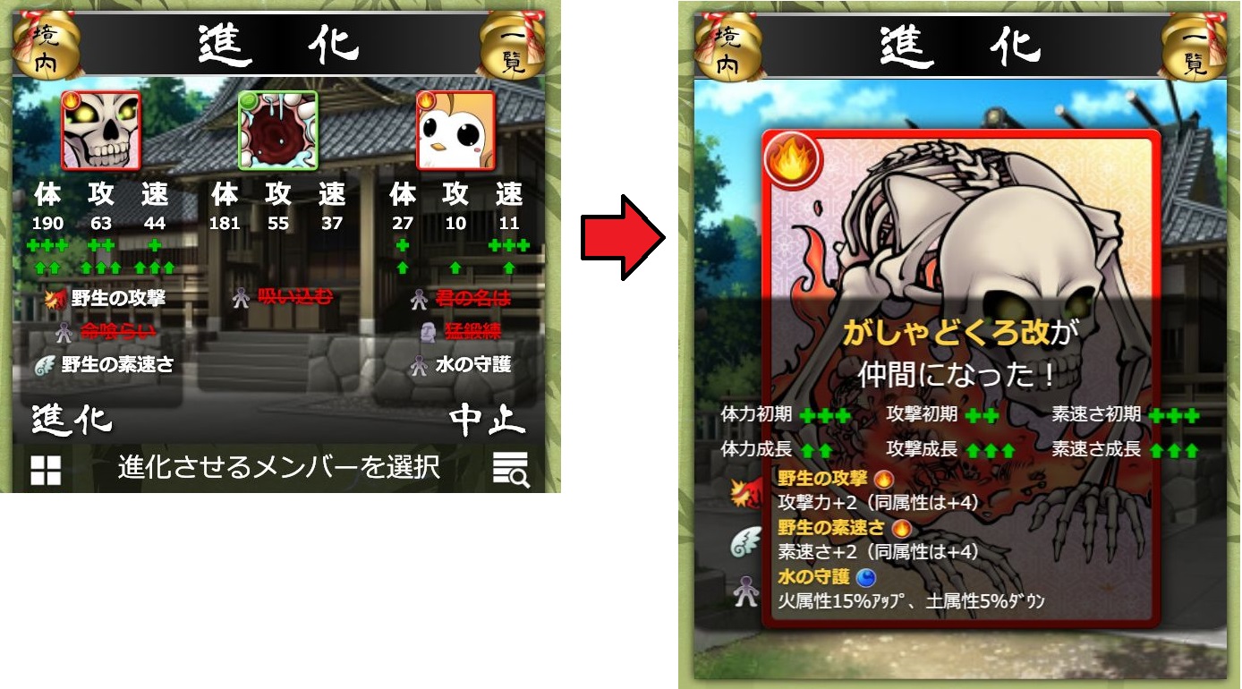 これ、進化先のがしゃどくろ改が命喰らいではなく、魂喰らいを引いた場合、魂喰らいが継承された可能性がありますね。