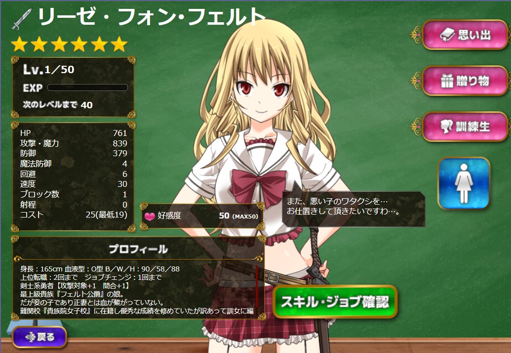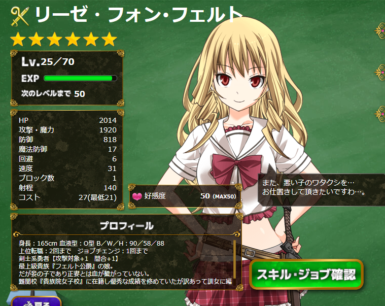 リーゼは、見習い→剣士→パラディンで最低コストが21ですね。スキルは時短Ⅱです。 -