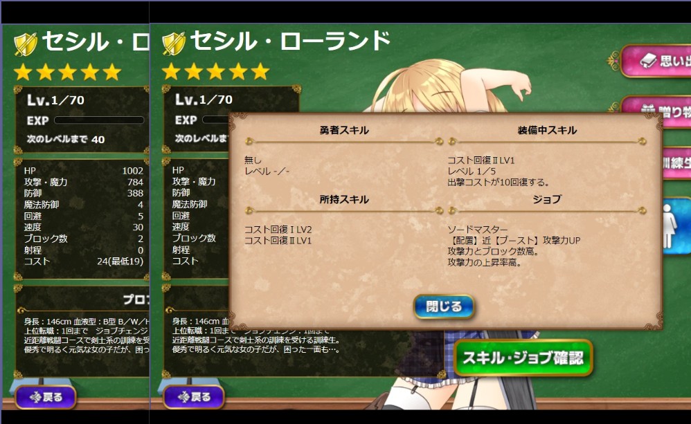 初投稿です。皆さんは転職してコストダウンしたのを見たことがありますか?うちのナンシーセコットをアーマーナイトから戦士にジョブチェンジさせたらコストが25から23に落ちました。この情報が役にたてれば幸いです。