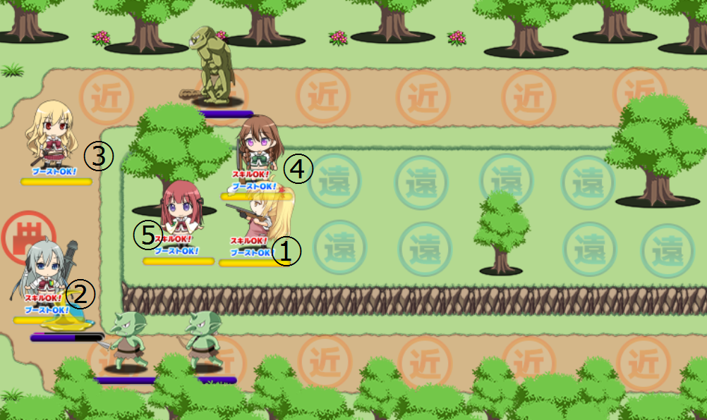 ②下の通路上にブロック数の高い戦士系を配置