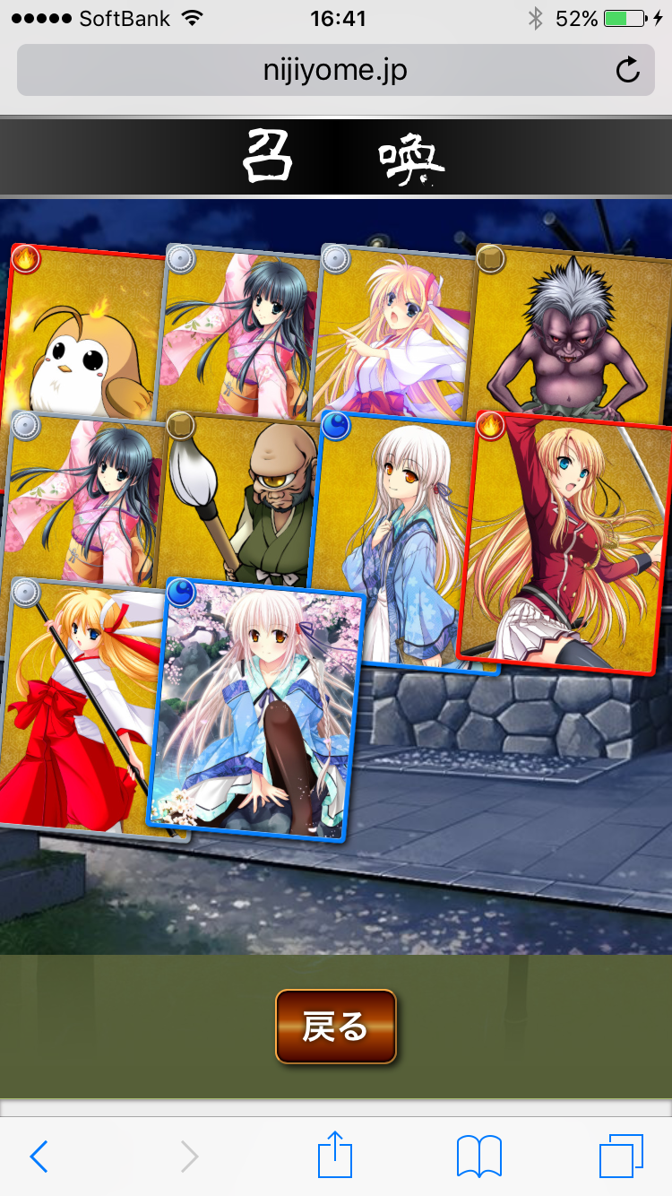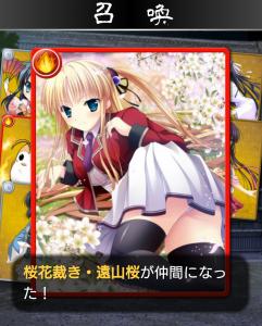 召喚で「!」がついてないのに限定召喚を召喚書で×20回してしまいましたよ・・・幸いにして桜吹雪なずな嬢が来てくれましたけど。