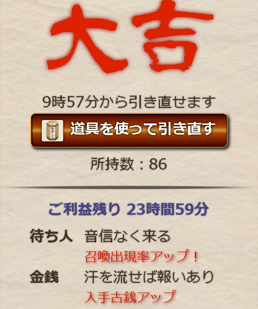 おみくじの「アップ」って「!」が付いているのといないのとがあったんですね・・・