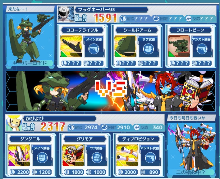 反応を盛らなければ先制で3ターン目をしのぐという対暴走機体の鉄板ともいえる戦法が使えないのがちょっと辛いですね -