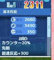 EXPERTに回避は2790で反応は800スキル先制付きで