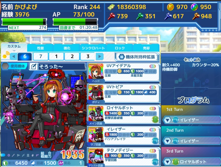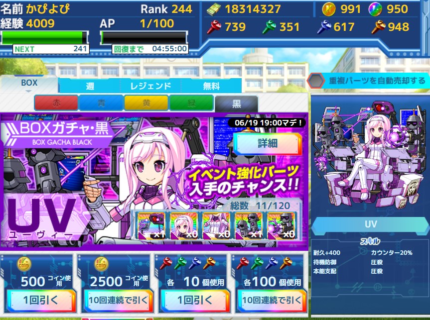 私もロイヤルボット以外は早めに揃ったのに結局113(/120)回と、いつも通り天井近い回数のガチャを引く羽目になりました…残念。 -