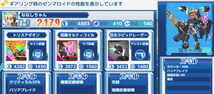 で、優遇なくなると2-3とかでカウンターとか読み間違いとか。一応、武器セットはバリアブレイクのプラズマガン、爆破物破壊のオルティコイル、ヘッドは1-15で手に入れた先制ヘッドという風にしているんですが、やはり厚着しないと駄目か。