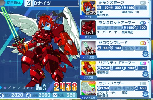 まぁこれだけ書いてもミレニアの武器のほうが攻撃上じゃん?って思う人はいると思いますが、「圧殺」「超速反応+400」「先制」これを持ちながらこの機体性能確保しちゃってるのは…