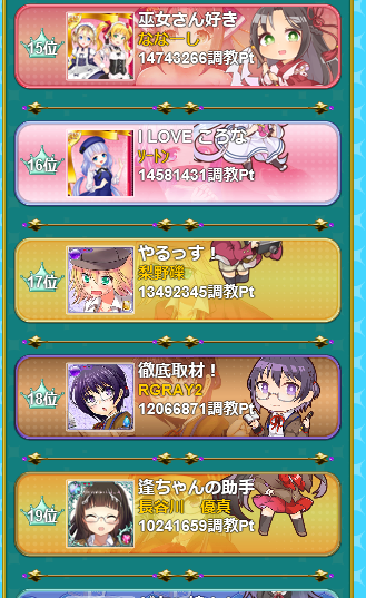 このイベント形式だと各々あそこまでポイントを貯めるのはさぞや大変だったでしょう…何人ヴィヴィアン様をノしたんですk -
