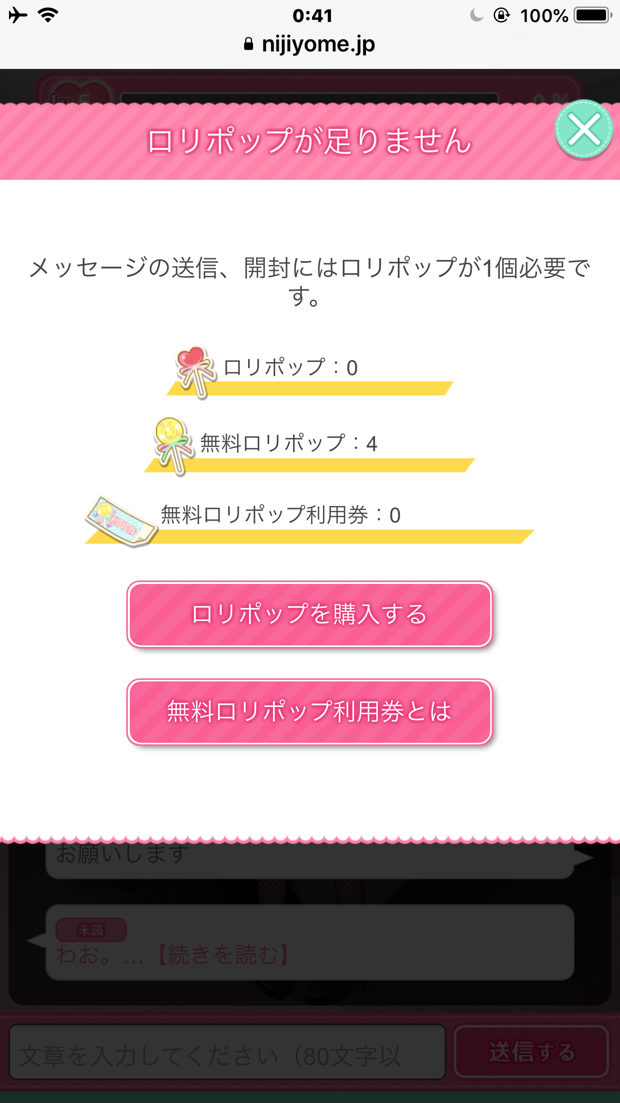 キャラと会話開始から30日?立つと無料ロリポップでの会話が出来なくなりますが、このとき使用できなかった無料ロリポップを28枚貯めるとロリポップ3枚?と自動交換され会話に利用できます。