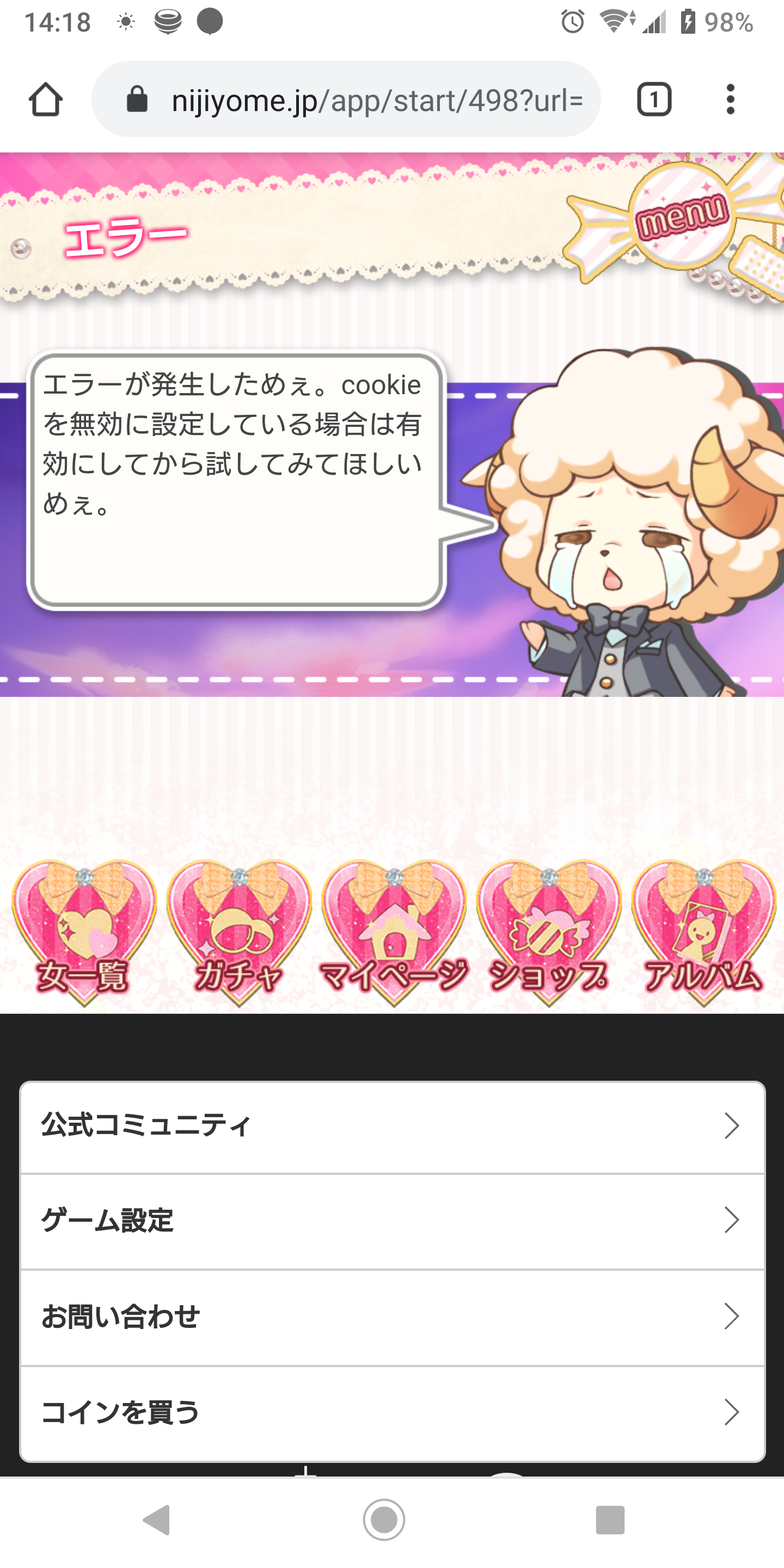 メッセージの開封が出来なくてエラーになるのは自分だけ? 再読み込みしても駄目みたいだ