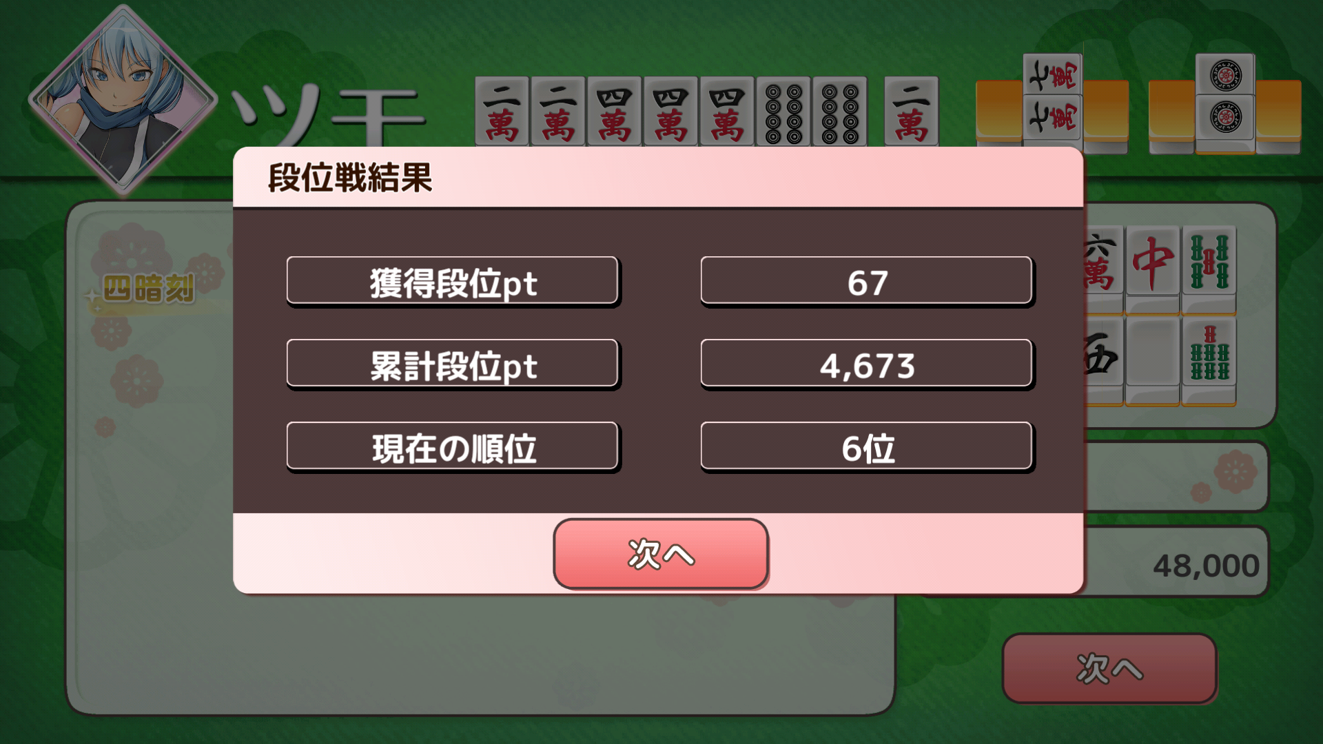 積み込みはいいんだけど配牌の時点で凄くいい状態だと裏目る裏目る...そこリーチで先手取られて一発ワンパン...☆4しかないし、辛いなぁ...ってネガティブなことしか言えてないな自分...