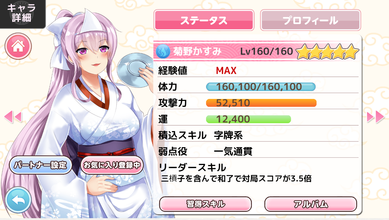そして、このゲームではプレイヤーがカンやリーチをした直後にcomの手が一気に加速する傾向にあるので、カンをしまくると自殺行為になることもあります。そういった意味では、菊野さんは扱い辛いキャラですね。 -