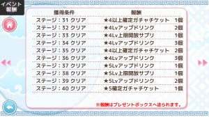 なので、特効キャラ入手出来ない人は、約束された捨てイベントですね。ステージ100までクリアしたら後は放置でいいのかな?どうせ200位報酬はいつもの星4でしょ?(´・ω・`) -