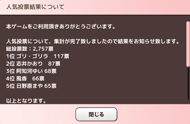 予選投票の後、上位に残ったキャラで更に決戦投票という形にすれば良かったかもしれませんね。