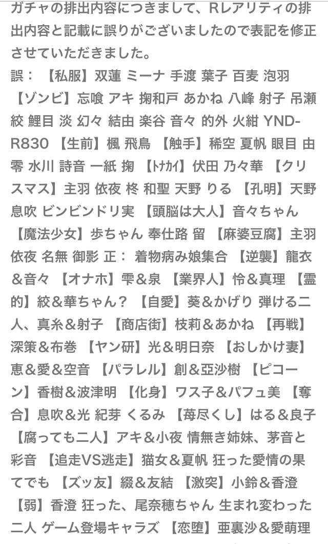 それはそうと誤りの方のRリストは常設ガチャの排出テーブルくさいな