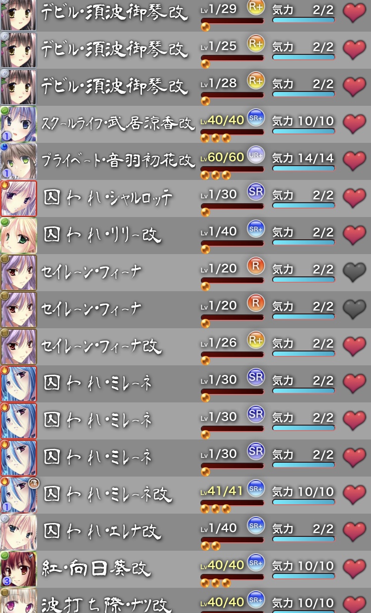 お、落ちない…萎えてきた。皆さんの景気いい_φ(・_・見てるとスマホ投げつけたくなるくらい。戦果はエレナ+包帯+雀なんだもんね。課題も巡礼も捨ててやり込んでだけどね。