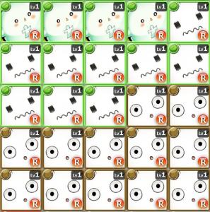 新しい進化システムでちょっと難しいんだけど、1の1レベルでも進化が可能、2のレア変わる場合(+がつく場合)の時以外は初期化の1レベルに戻されない、ってことは(全部同じカードとして)R+(A)とRの2枚があった時に、RとRを進化させてR+(B)にして進化させて、またそれにR+(A)を使って進化させるという一枚にまとめることが可能になったのか。