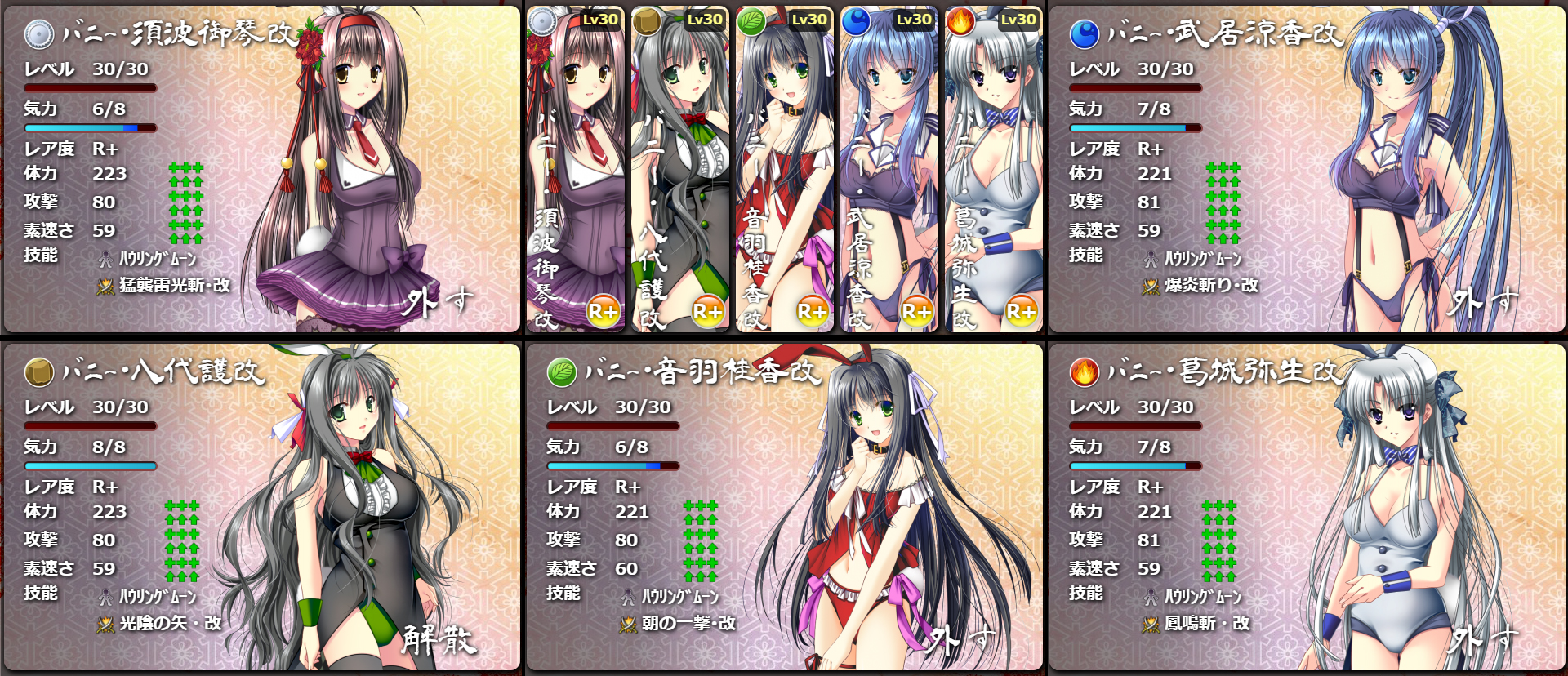 育成課題なのでSRレベル1編成で突っ込んでみましたが…レベル30到達には木像二桁消費半端なくて、やっぱり育成対象は2まいが限界かな。