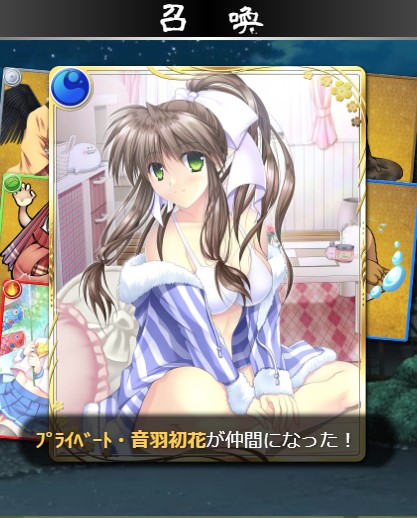 今回のイベントの特別召喚で書+コインで総計6回ばかり回したのですがUR初花ちゃんばかり5枚連続で来ましたですよ。