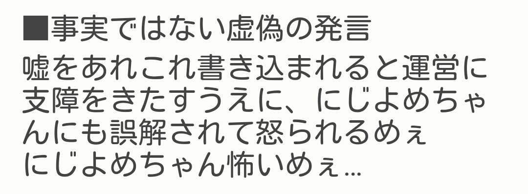 にじよめちゃんに怒られるって・・・・書き込みが虚偽だと言うのかね?たつやよ・・・・