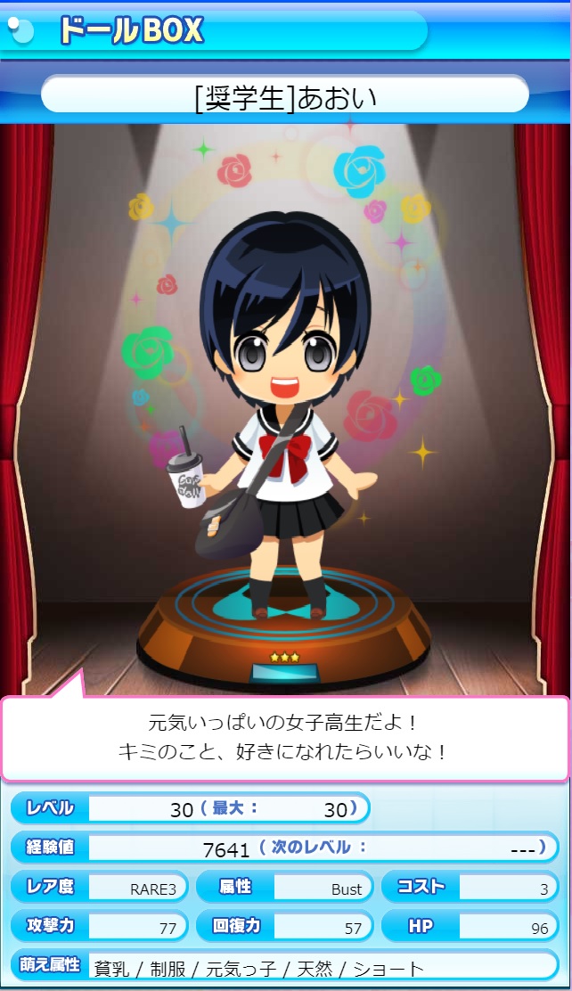 どうしても勝てない時は、借りるドール選択画面で高いステータスのドールが出るまで、「戻る」でトップ画面戻してました。