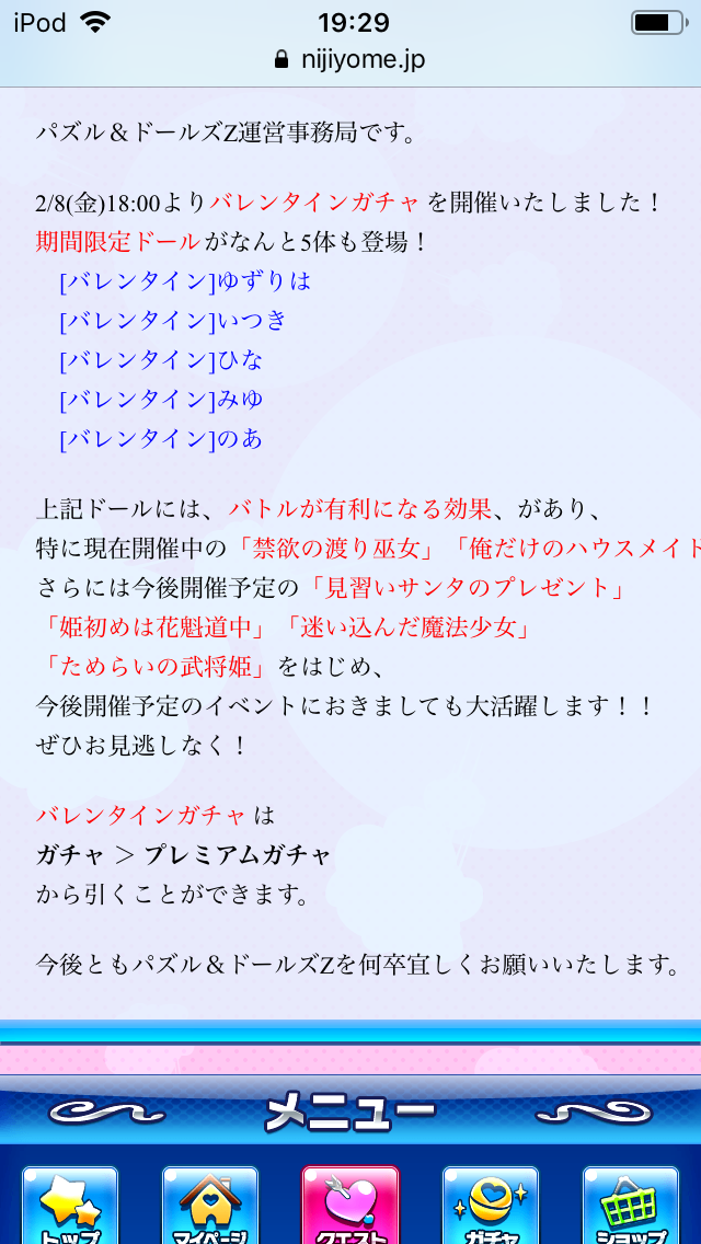 バレンタインガチャのドールって修正する予定だったけど旧データから直しわすれてるとかありそう