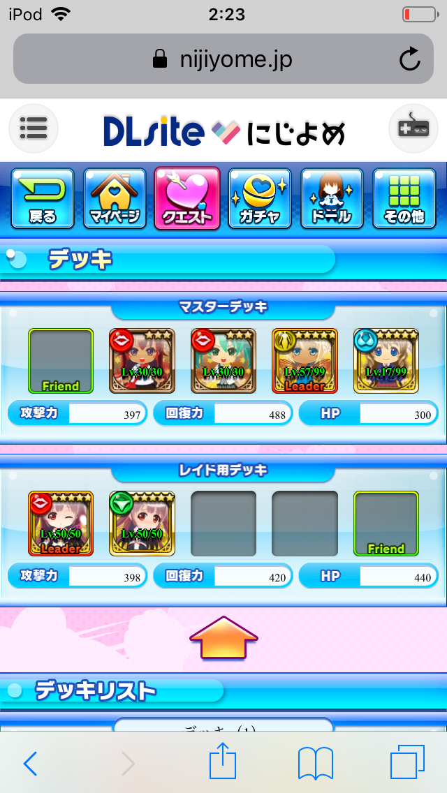 この組み合わせの場合左でバスト破壊狙い、右でヒップ破壊狙いというふうにデッキの組み方で幾らか楽になります(DMMでやってた方達には不要ですね) -