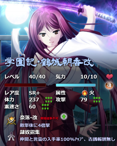 前、期間中に柏餅231個取れるからUR2枚はいけると言いましたが今よく見てみると柏餅3個で1枚引けるのですな(つまり最大77連。運が悪いと残りの23枚にURが残る)