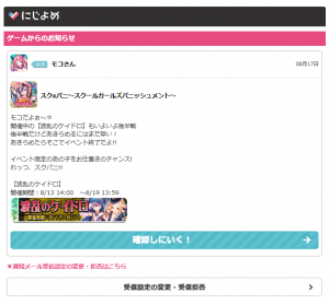 まあ今はゲームからのお知らせとほぼ同じ文面なんですけどね。