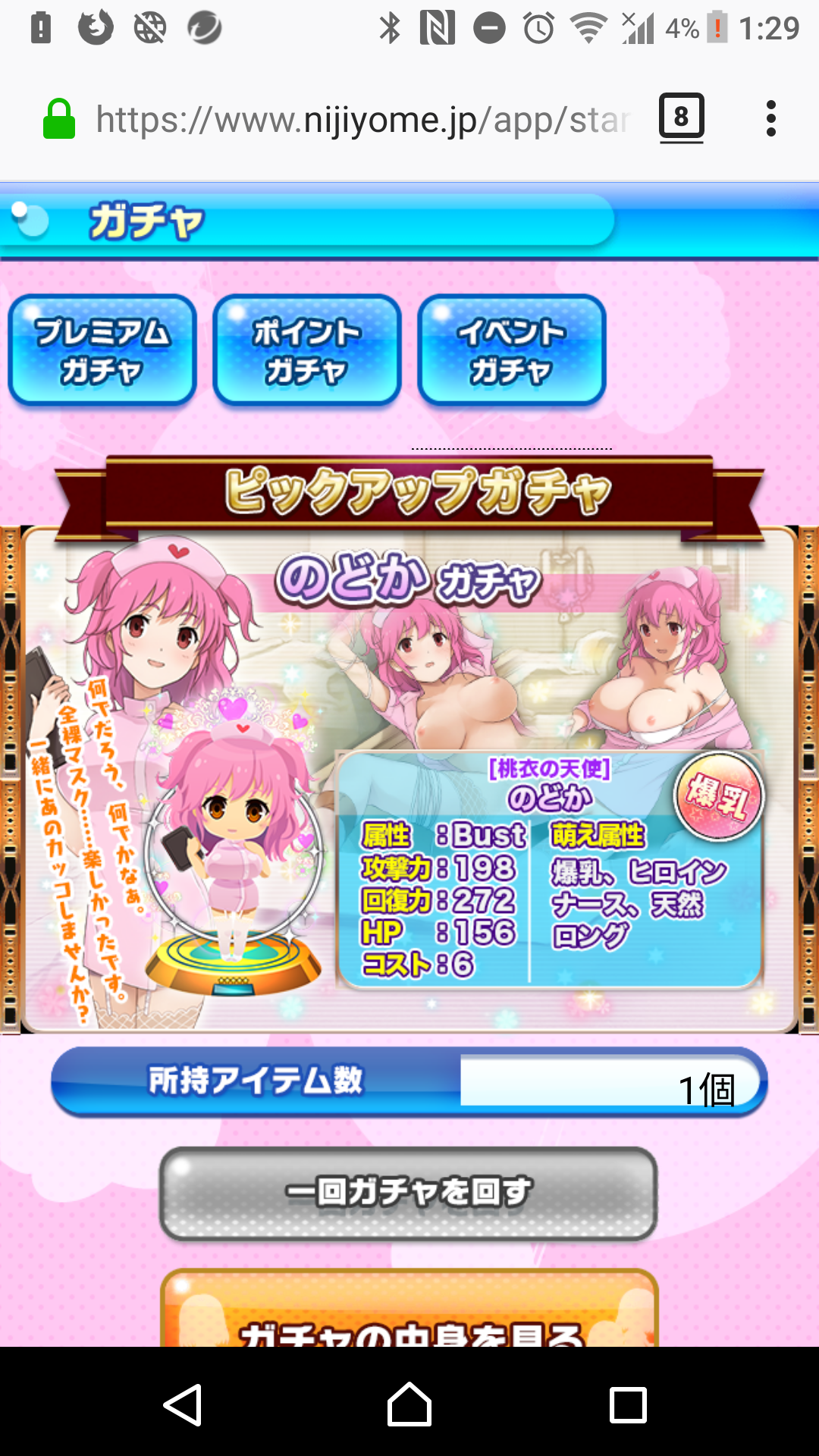 昨晩、ガチャチケ10枚集まったので、ビックアップ引いたら