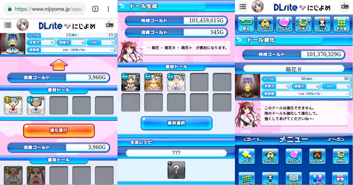 生成後ドールか生成元どっちか忘れたけど、それで必要ドール見れてたね