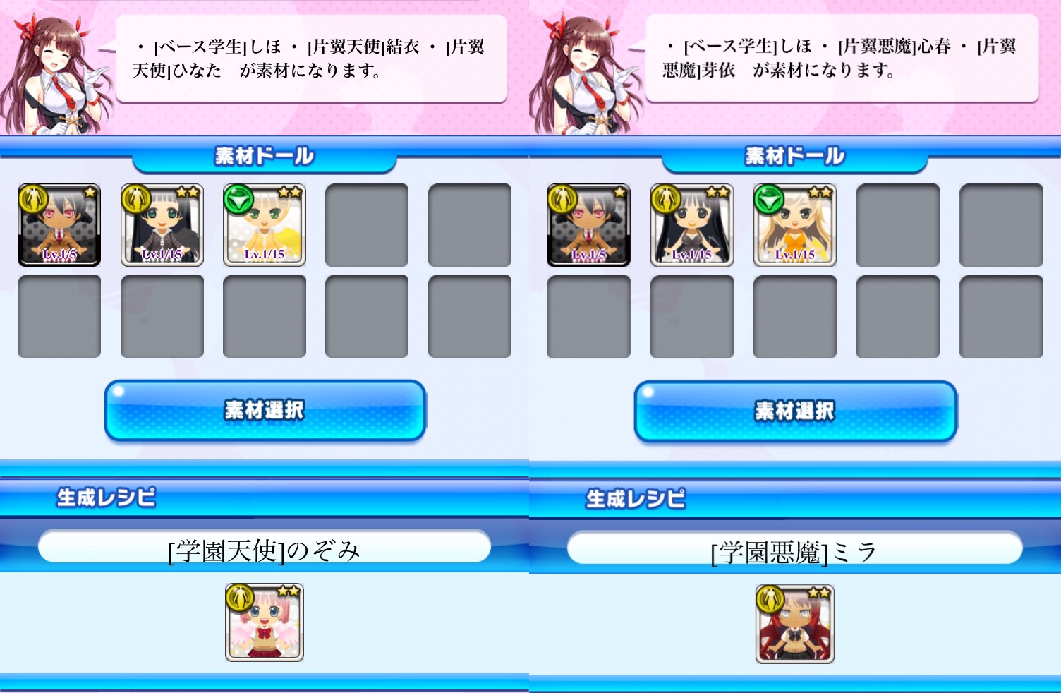 学園天使・学園悪魔の2体生成で、聖学生のぞみ・魔学生ミラを生成するのは、
