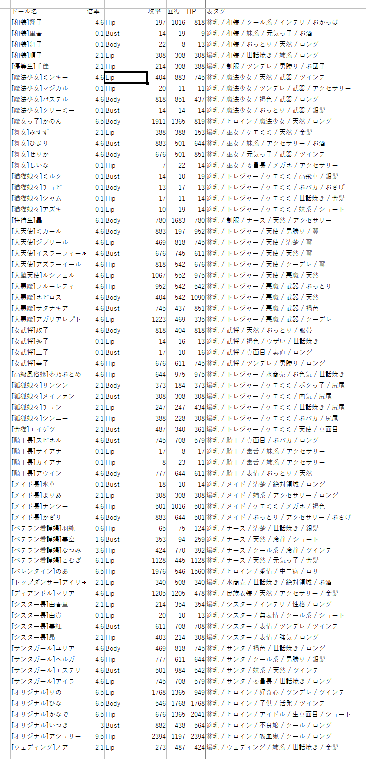 R4リップのナース2体固定で、後の2体を各14種類からリップを合わせての14C2=91通りを確認してきましたが、全て???でした。