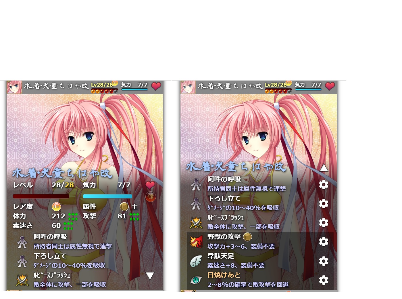どちらも連撃順調整する阿吽の呼吸と「殴って回復」する全体攻撃技能を