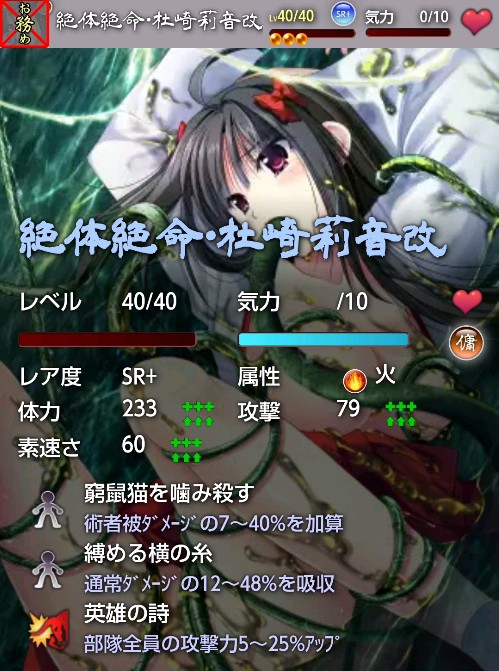 あとは課題とかで編成にR妖怪が入った際の穴埋めにSR+以上の強いキャラが普通に役に立ったりですが、